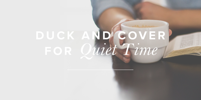 The little years won’t last forever. Which means eventually we will have more time for personal quiet time. In the meantime, we must fit the practices of being still, learning God’s Word, and seeking Him first into the nooks and crannies of our day. It may not look like having an hour-long Bible study while sipping from a steaming cup of coffee. But daily time with the Lord can happen, even if you must duck and cover under your apron.