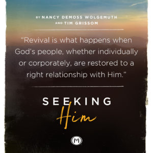 “Nancy DeMoss Wolgemuth and Tim Grissom have produced a magnificent interactive study for those who want to go deeper with God, and experience Christ’s grace and empowerment in every area of their lives. Seeking Him will help you examine yourself in light of Scripture. It will take you to God’s throne, where you’ll realize He alone can meet your deepest needs, and He alone is worthy of your worship. I highly recommend this work.”