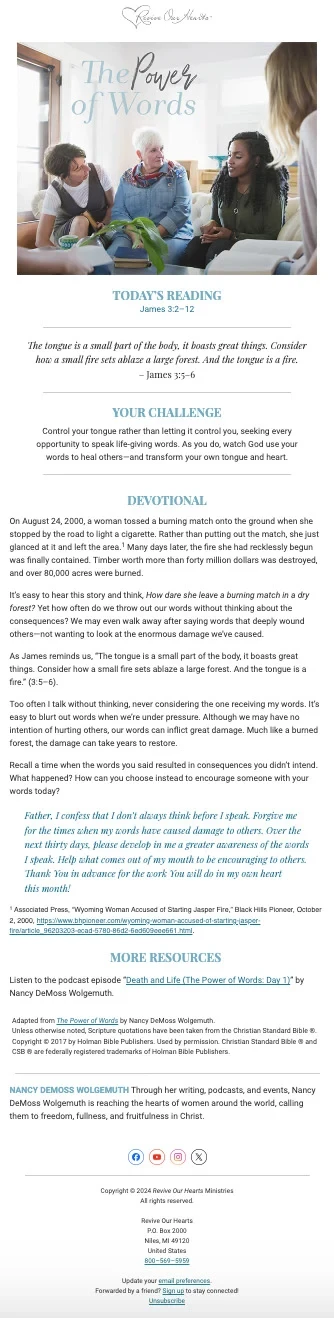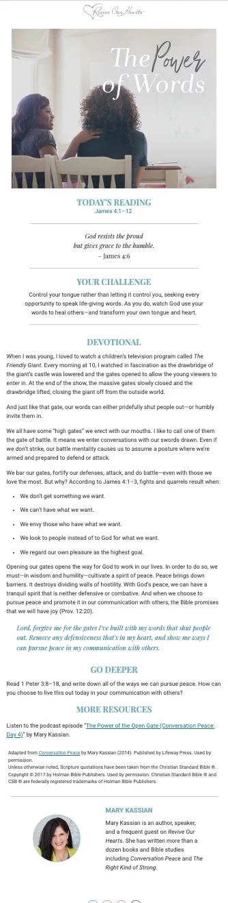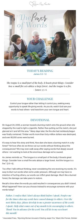 What would happen if you controlled your tongue rather than letting it control you? May God use this 30-day challenge to transform your tongue and heart for God's glory.