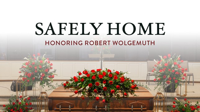 Pastor Joe Fant: We've gathered here this afternoon in this place to grieve the loss and celebrate the life of our dear friend, Robert Wolgemuth. Our hearts mourn the Homegoing of a father, a husband, a grandfather, uncle, a brother, so many titles Robert owned, but most importantly of all, he was a faithful follower of Jesus Christ.